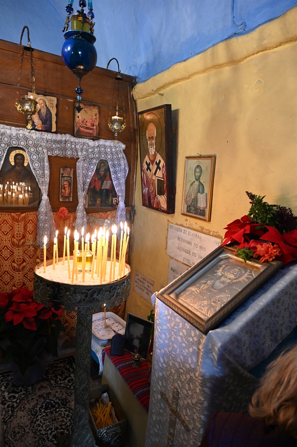 Σε κλίμα ιερής κατάνυξης και πνευματικής ευφροσύνης τελέσθηκε σήμερα η πανηγυρική Θεία Λειτουργία στο ιστορικό παρεκκλήσιο του Αγίου Νικολάου «Ράχης» στην Άνω Μερά Μυκόνου, μετ’ αρτοκλασίας και των καθιερωμένων δεήσεων. Της ιεράς συνάξεως προεξήρχε ο Καθηγούμενος της Ιεράς Μονής Παναγίας Τουρλιανής, πανοσιολογιώτατος Αρχιμανδρίτης π. Αλέξιος Παπαδόπουλος, πλαισιούμενος υπό του διακόνου Φιλάρετου.
