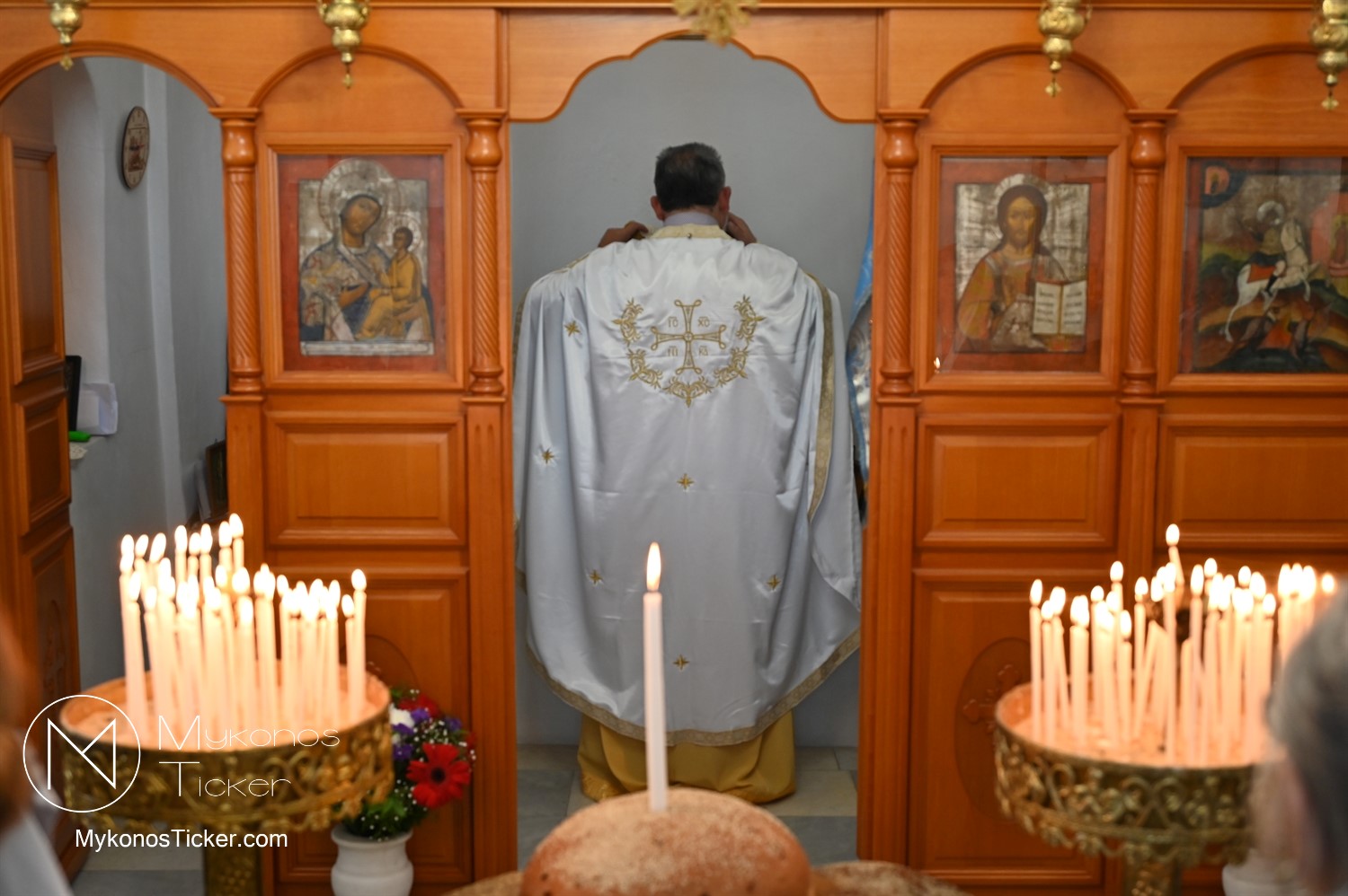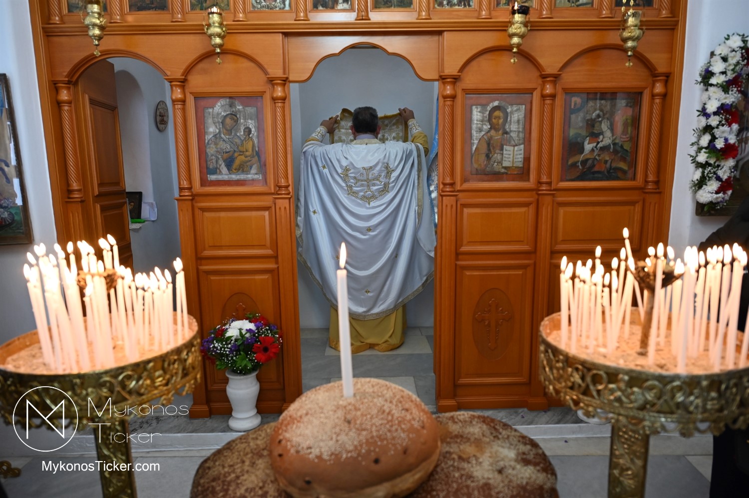 Μέσα στο λαμπροφόρο κλίμα της εαρινής περιόδου, εκεί όπου το ανέσπερο φως της Αναστάσεως συναντά την πορφύρα του μαρτυρικού αίματος, η Ορθόδοξη Εκκλησία μας εορτάζει την πάνσεπτη μνήμη του Αγίου ενδόξου Μεγαλομάρτυρος Γεωργίου του Τροπαιοφόρου. Σε αυτό το λειτουργικό «νυν», όπου ο ουρανός κατέρχεται στη γη και τα επίγεια δοξολογούν τα επουράνια, το νησί της Μυκόνου απέδειξε για άλλη μια φορά πως κάτω από την κοσμοπολίτικη επιφάνειά του, πάλει μια καρδιά βαθιά ελληνορθόδοξη, πιστή στις πατροπαράδοτες ρίζες της.